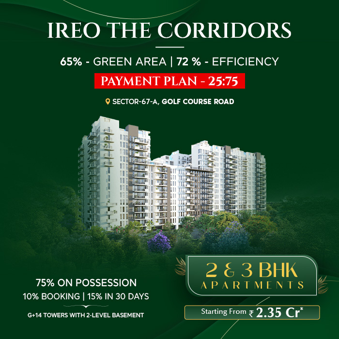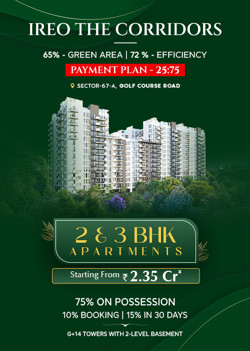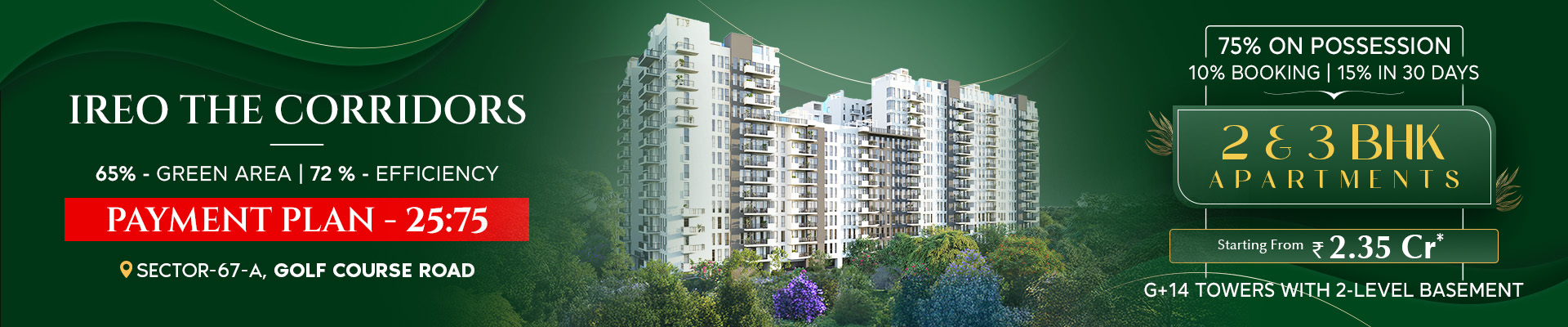 One of the largest condominiums in Gurugram, you’ll find over 10 acres of interlinked contiguous landscaped greens at Ireo Corridors. It is strategically located in sector-67A of Gurugram city. There are fully-furnished apartments with stunning nature’s view from balconies. Ireo The Corridors is well-equipped with modern amenities such as dining area, clubhouse, swimming pool, kids play area, cricket arena, tennis court, park and garden etc. Ireo Corridors Gurugram is sufficiently ventilated and each corner receives a good amount of natural sunlight. All this within a sprawling 37.5-acre secured community. Designed as a microcosm of the outside world, The Corridors integrates the finest in living spaces with leisure amenities and essential facilities alike. So, you’ll find everything from a hospital to a full - fledged high school to retail zones to sports centres within The Corridors.